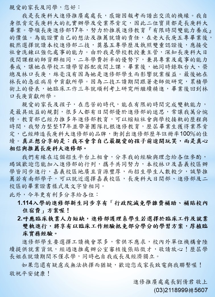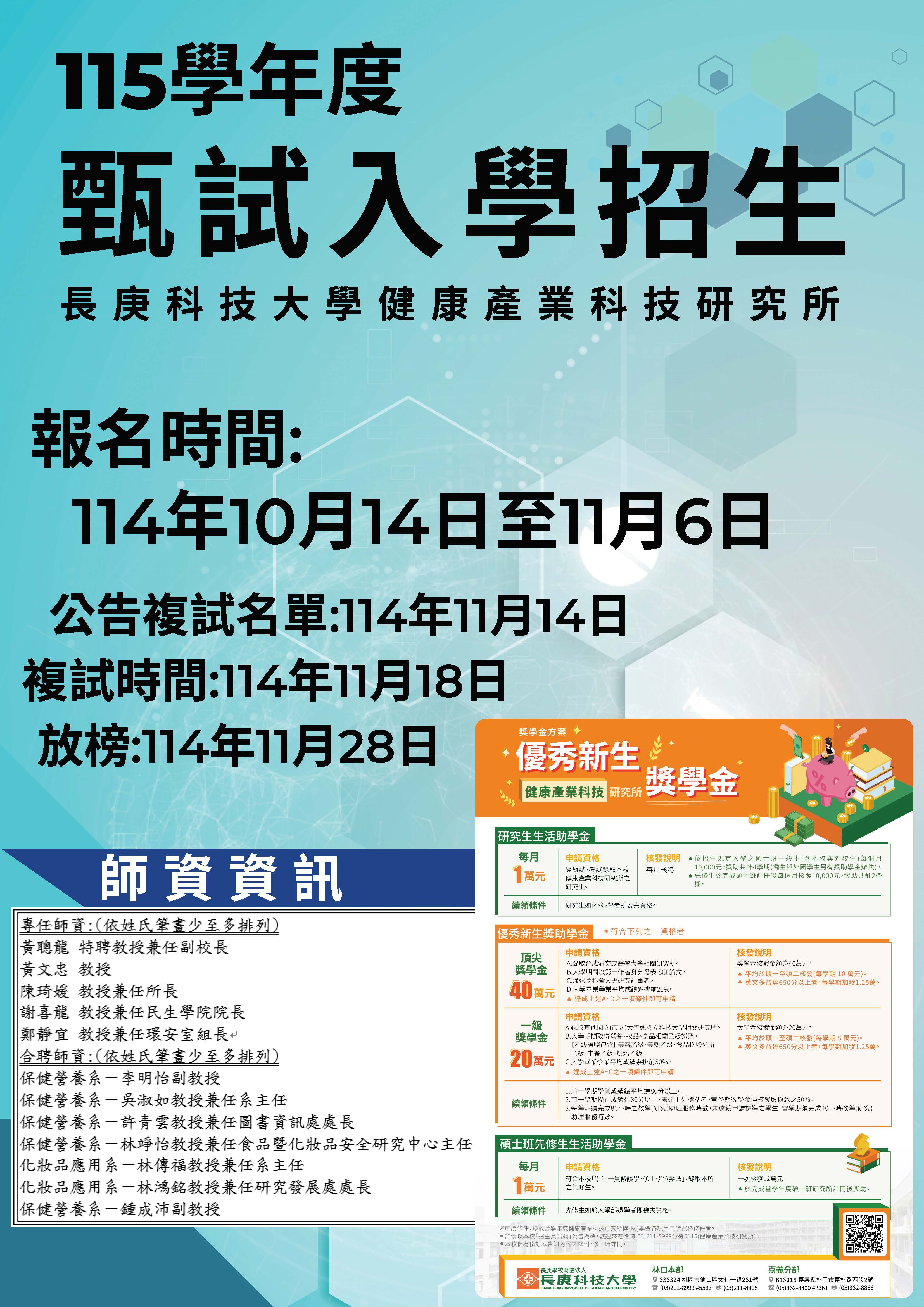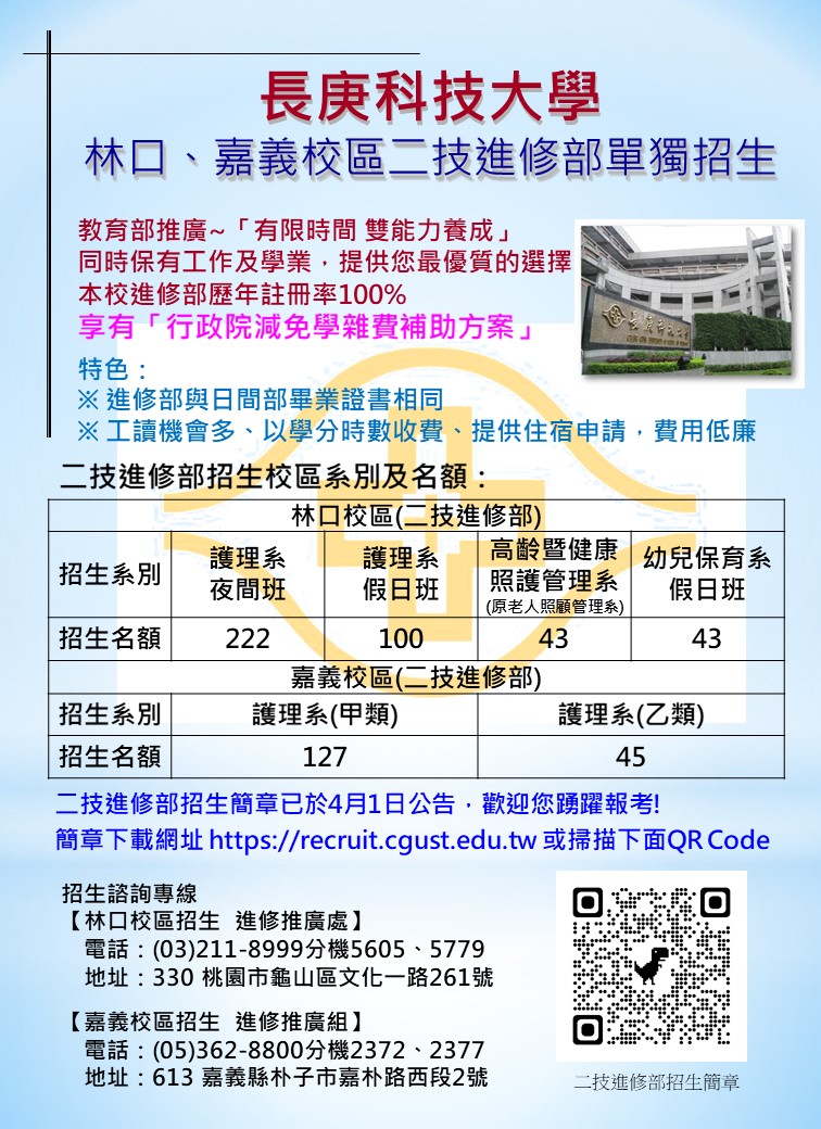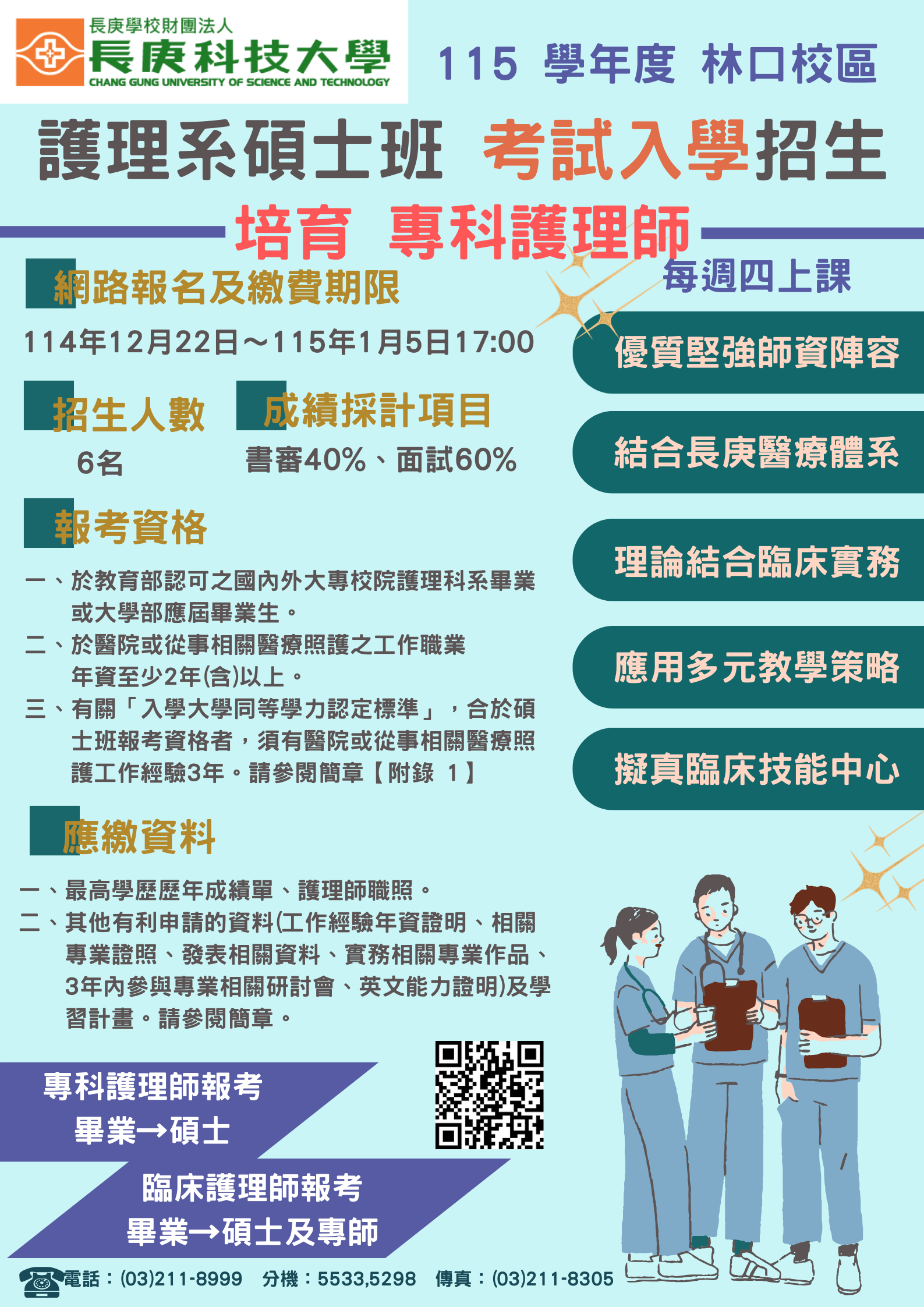 林口 03-2118999 分機 5605、5779 Email:myc1010@mail.cgust.edu.tw、wcsu@mail.cgust.edu.tw